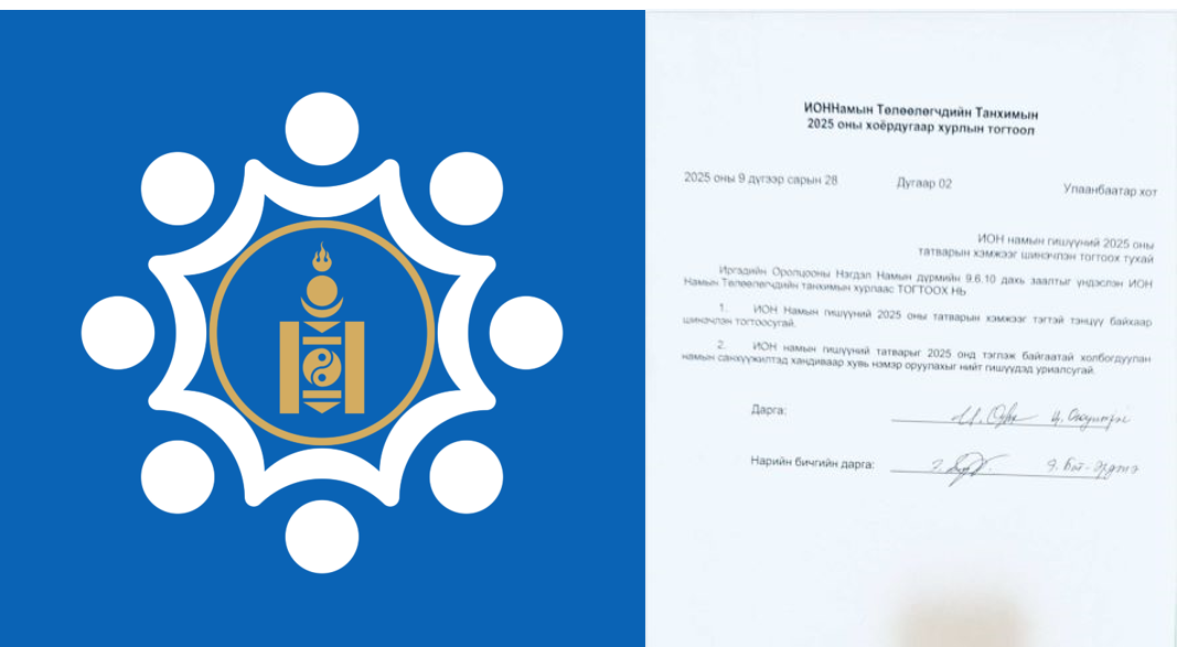 ИОН намын Төлөөлөгчдийн танхимын 2025 оны 2 дугаар хурал 9 сарын 28-ны ням гаригт хуралдаж 2025 оны намын гишүүний татварыг шинэчлэн тогтоох тухай асуудлыг хэлэлцлэ...